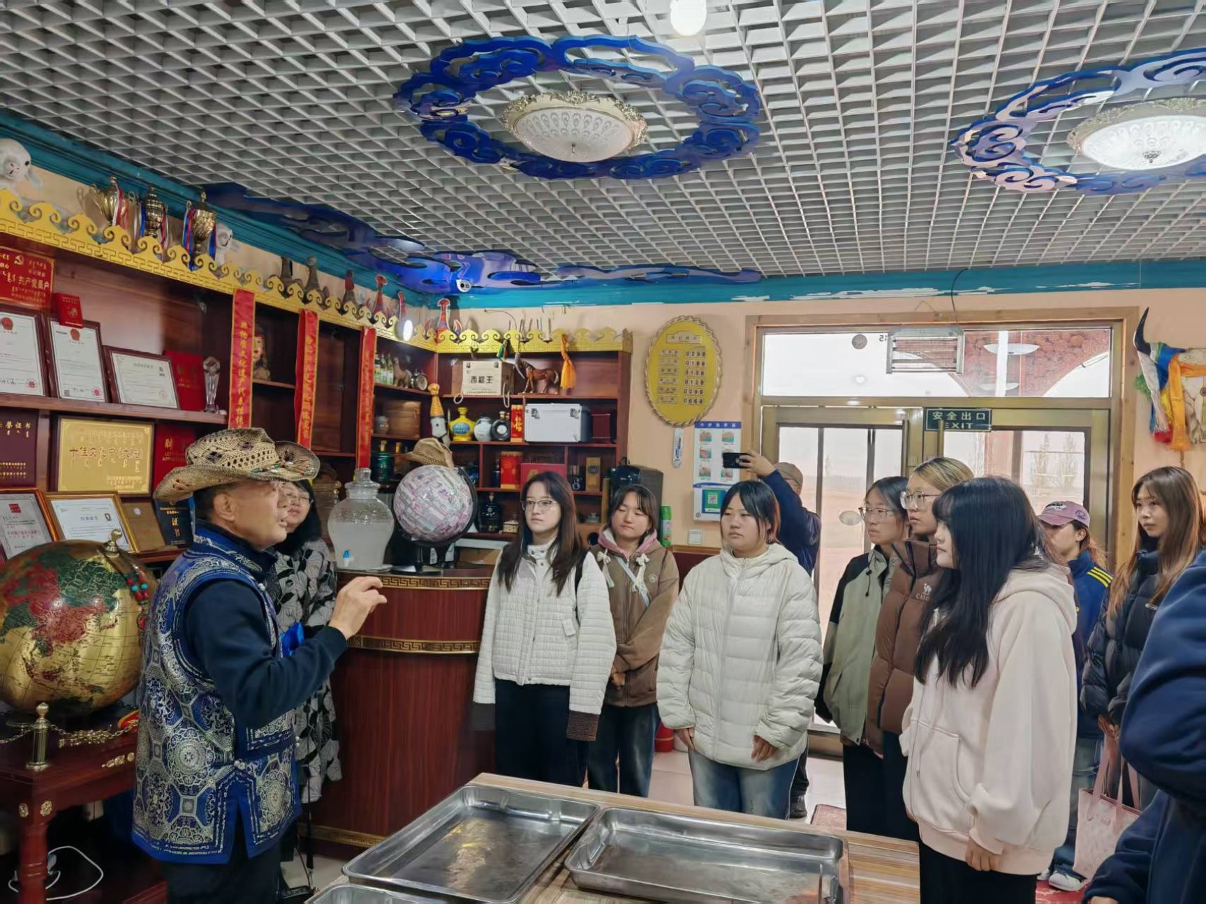 为进一步传承和弘扬中华民族优秀传统文化,整合校企优质资源共促美育实践,10月18日,学院基础部副主任刘晓丽与伊金霍洛旗苏布尔非遗嘎查查干锡力旅游度假村负责人吉人泰共同为学院美育实践基地挂牌,这是学院继达拉特旗赵大剪文化大院、杭锦旗敖特尔奶牛养殖专业合作社之外又新增的一处美育实践基地。