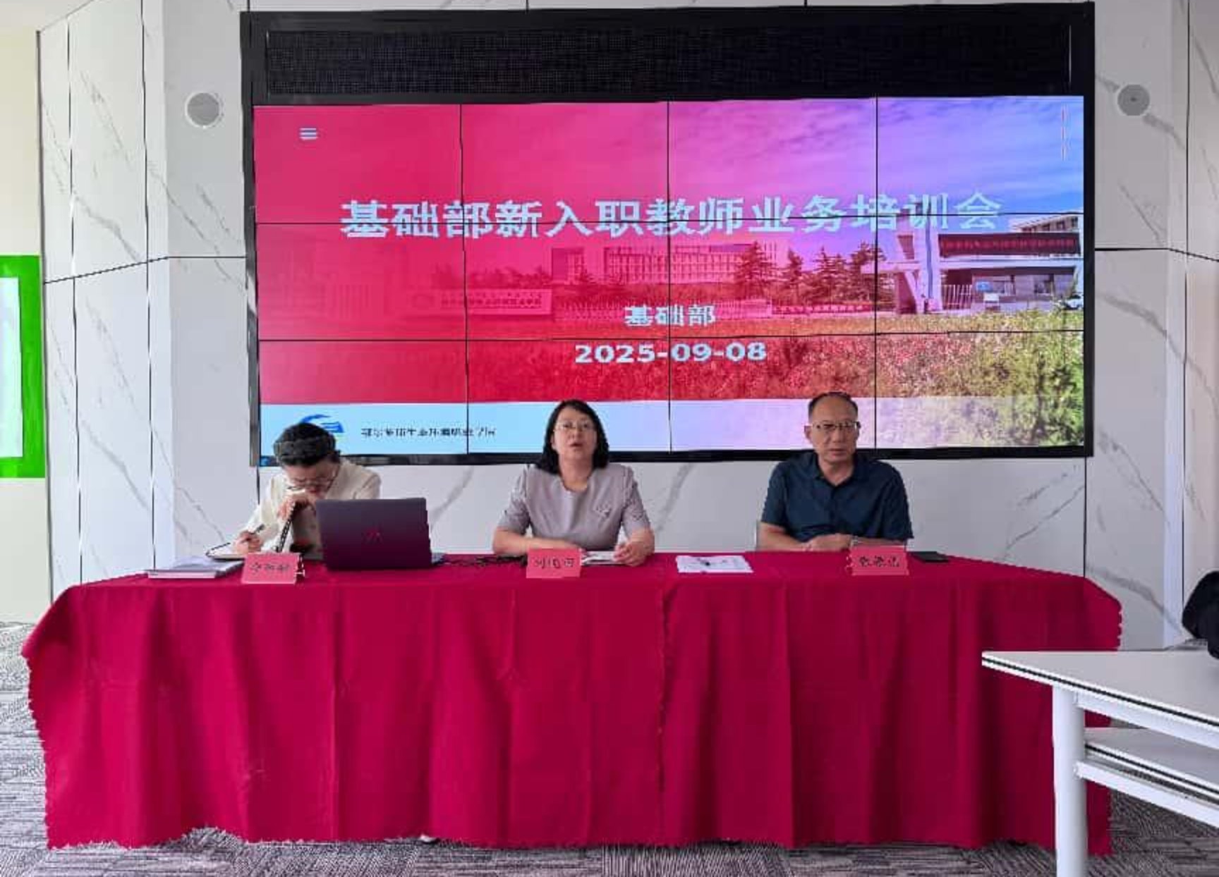 为助力新入职教师快速适应岗位要求,夯实教学基本功,基础部近日组织召开专项业务培训会,围绕教学规范、管理实务、技术赋能及职业发展四大模块展开系统指导。会议由基础部副主任刘晓丽主持,教务处、办公室相关负责人及近两年内入职的新教师参会。