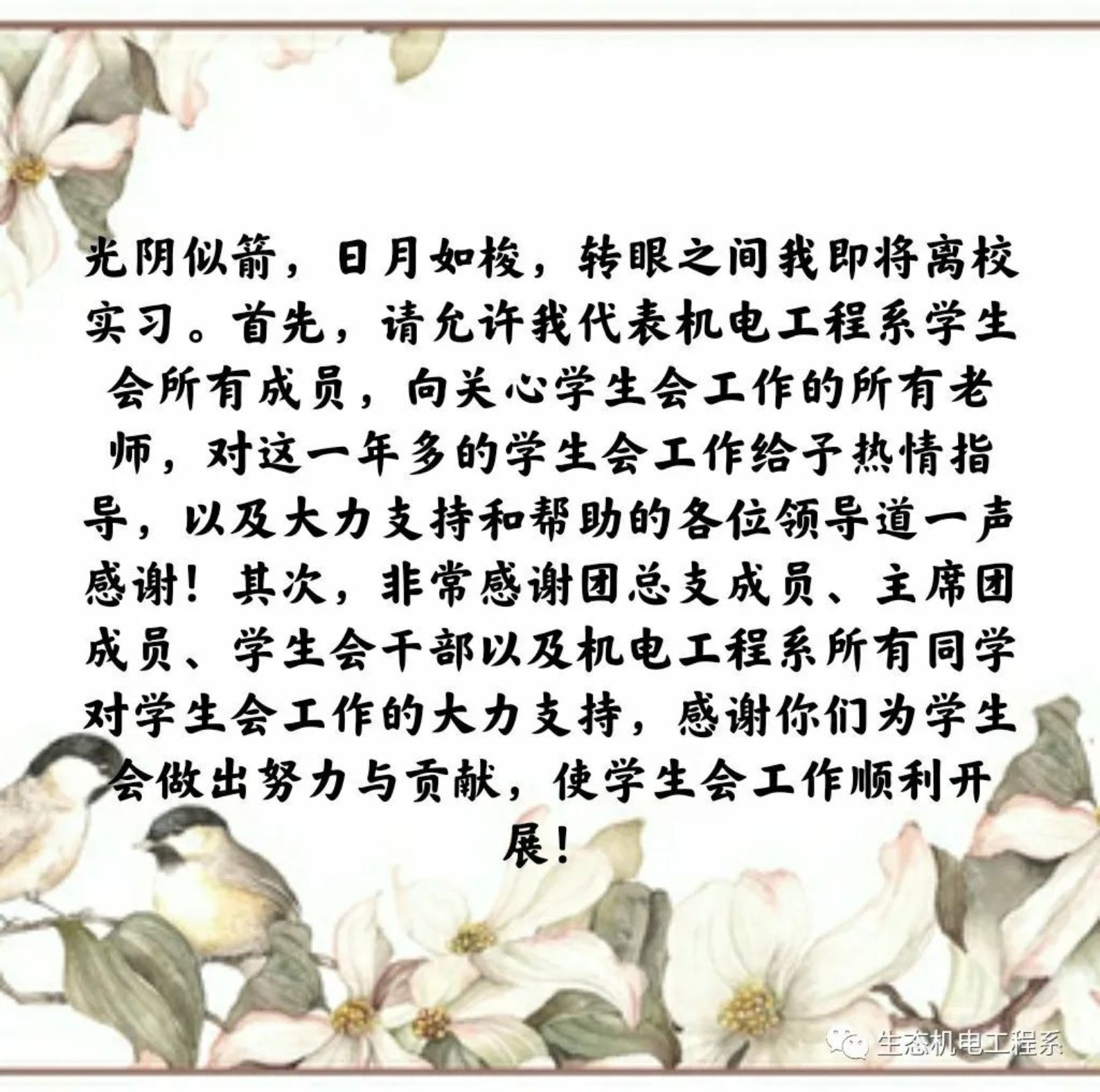 我们的原总支学生会执行主席宋飞荣同学在即将离开学院之时,向我们在大会上吐露了很多肺腑之言,他感激老师的支持和同学们的配合,希望未来的集体会更加美丽。