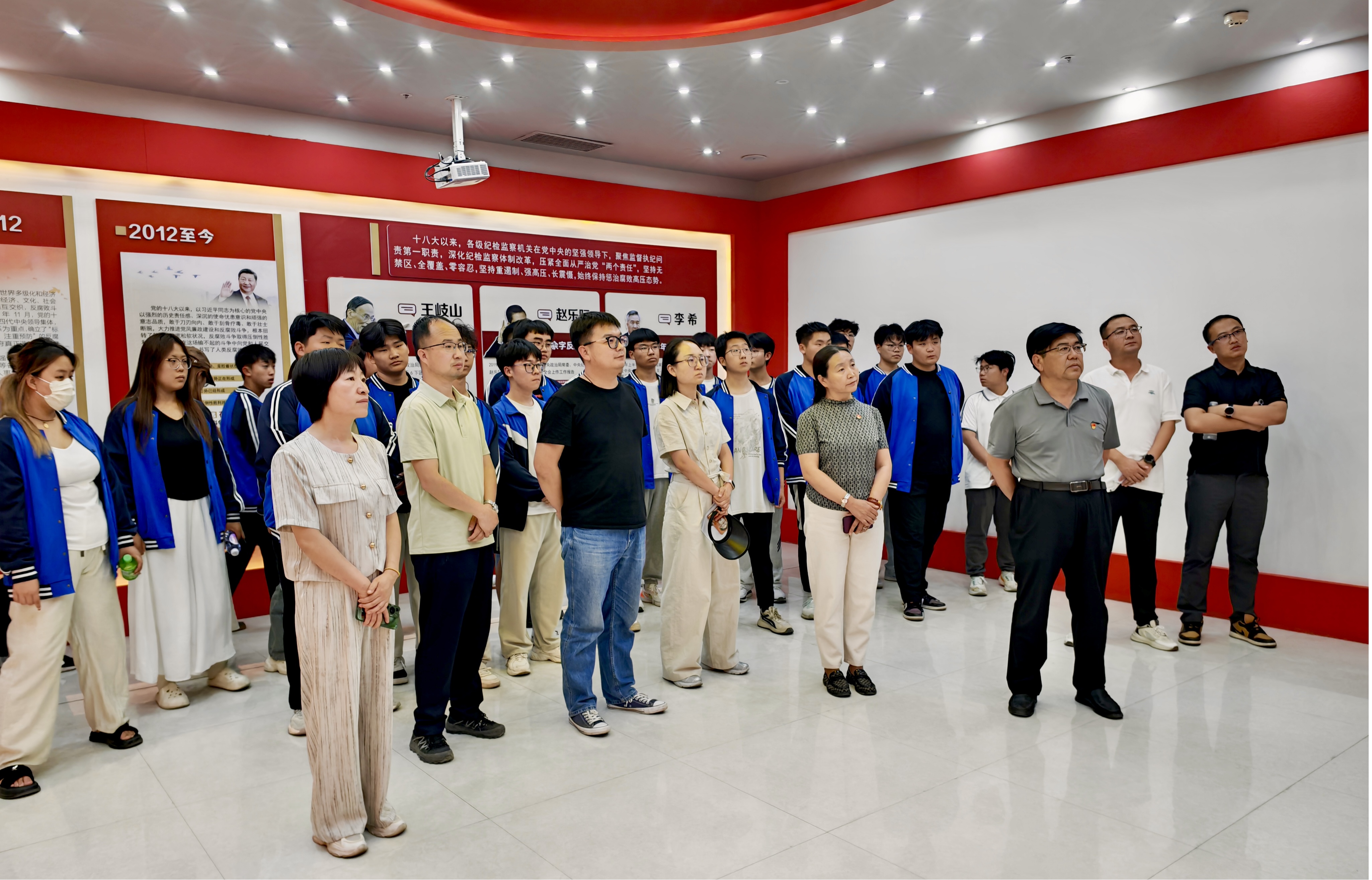 在廉政展厅,全体人员依次参观了“从严治党”“廉政文化”“警示教育”等主题展区。通过图文展板、典型案例、互动影像等多种形式,深入了解了党的纪律建设历程、中央八项规定精神内涵以及反腐败斗争取得的重大成果。党支部书记宝晓强调“作风建设永远在路上”,要求全体党员以案为鉴,严守政治纪律和政治规矩,切实将廉洁要求贯穿到教育教学全过程。