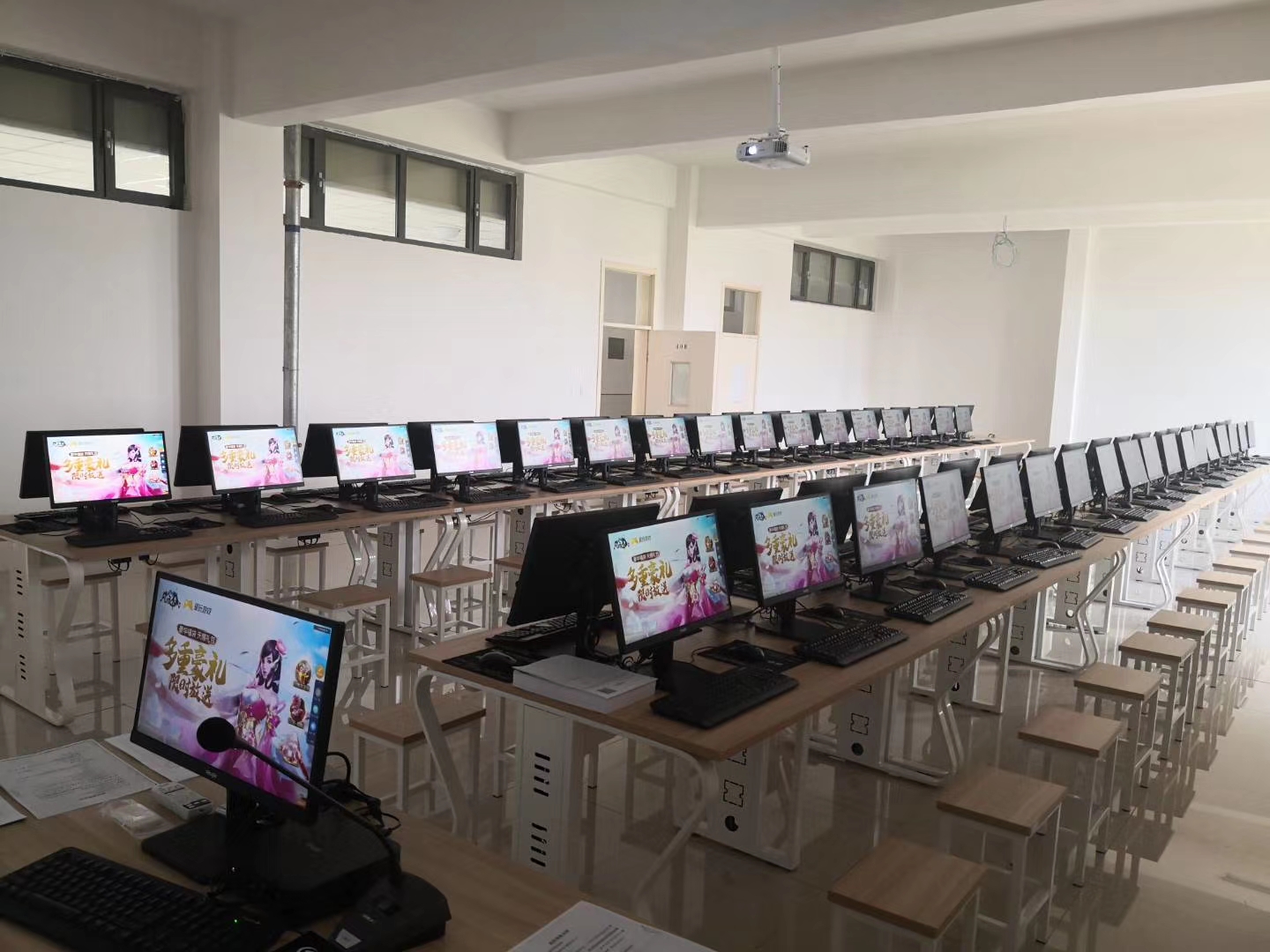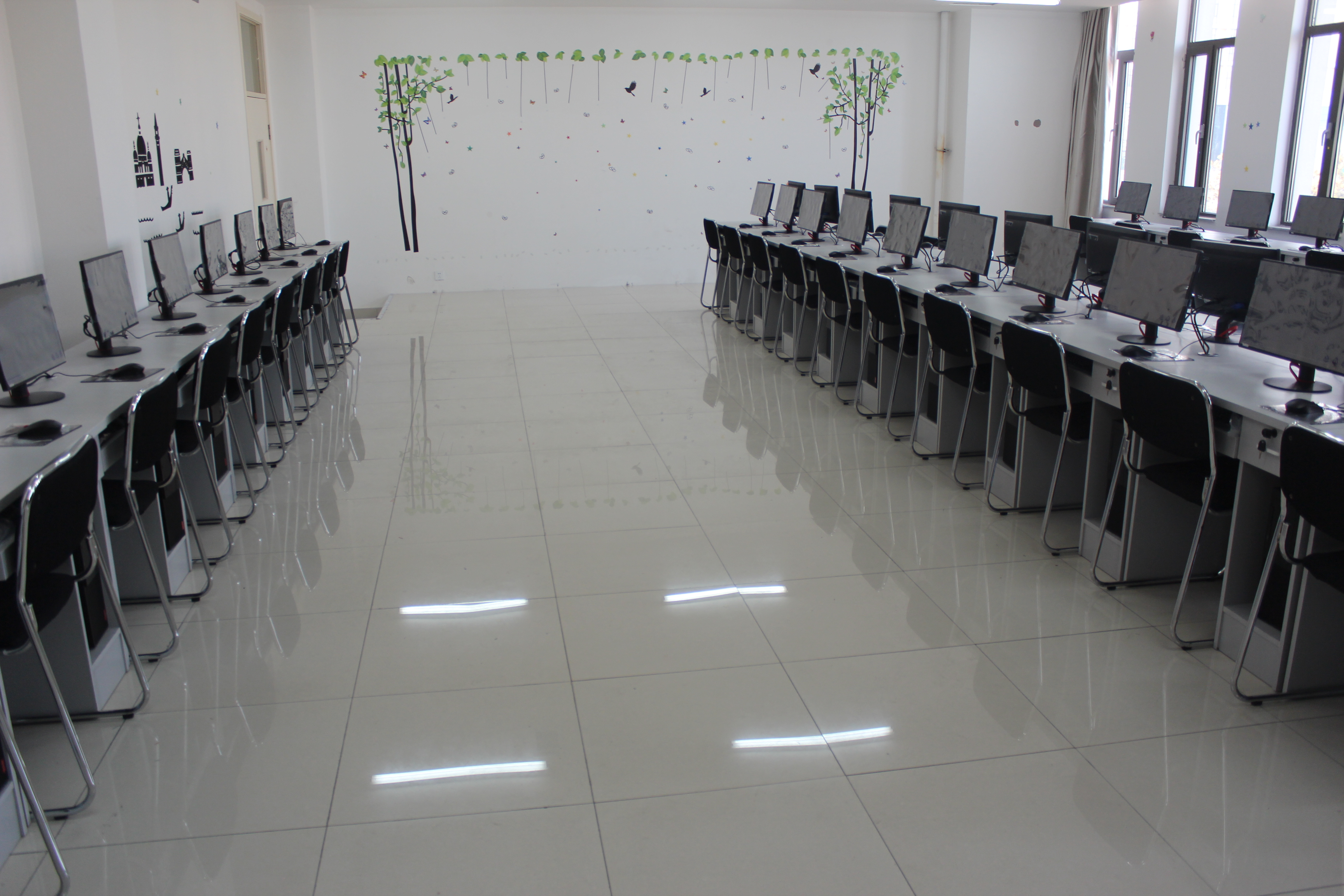 经济管理系按照社会、行业、企业需求特点打造专业实训室,系内现设有财会现代化云桌面机房、财会手工模拟实训室、财会电算化实训室、智能物流综合实训室、电子商务模拟实训室、餐厅客房综合实训室等多个实训场所,建筑面积约600余平方米。各实训室规划合理、设备先进、运转流畅,具备开展专业实操、技能大赛、教学模拟、“1+X”证书培训等教学条件。