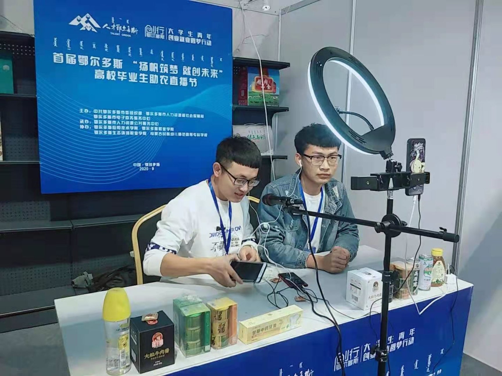 学生参加首届鄂尔多斯“杨帆筑梦 就创未来”高校毕业助农直播节