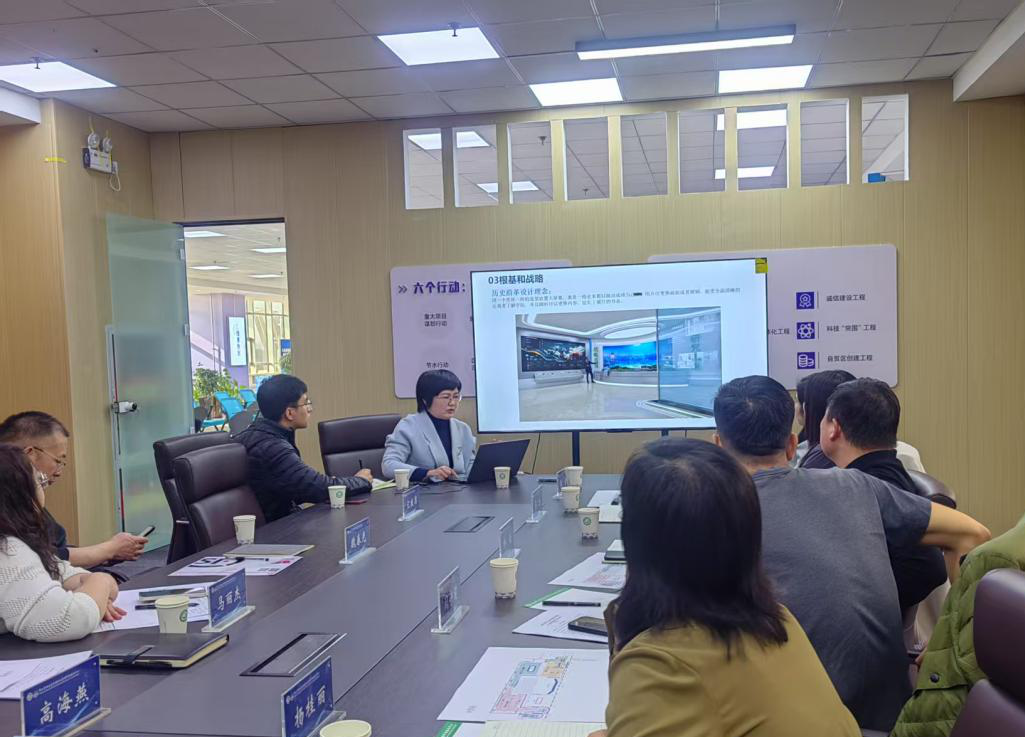 会上,设计单位详细汇报了人才科创中心的设计理念、方案实施和最终呈现效果,并结合学院办学特色、科研方向和科创中心的功能定位提出了不同设计思路。强调“以线条与参观动线的流畅性为设计基础,以科研项目与专业特色的协同发展为展示核心,以人才培养与科研成果的落地转化为价值导向”的原则,同时通过制作体验展区的设置,增强趣味性和参与感。此外,为提升科技感和互动性,设计团队充分利用了多种前沿科技手段,通过触摸屏、全息投影、虚拟现实VR等技术,旨在打造一个兼具科技感、互动性和多功能性的现代化科创展示空间。