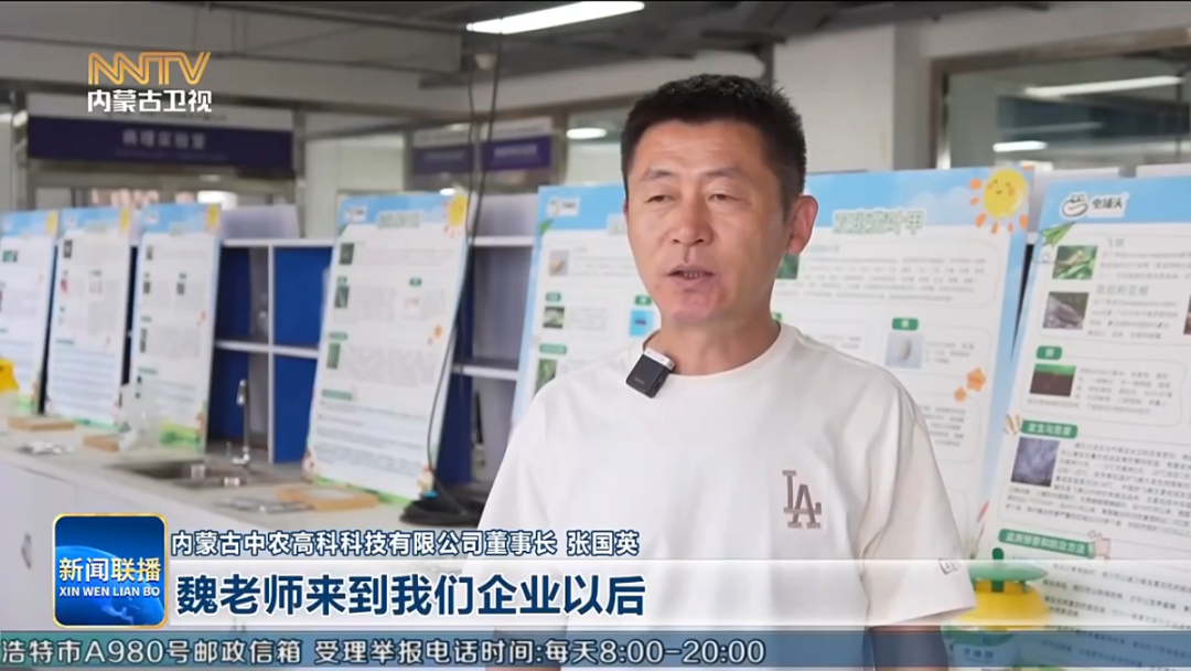 内蒙古中农高科科技有限公司董事长 张国英 魏老师来到我们企业以后,在产品的升级换代方面,我们和魏老师在田间地头经过了多次的反复验证,使我们的产品进一步得到了提升。