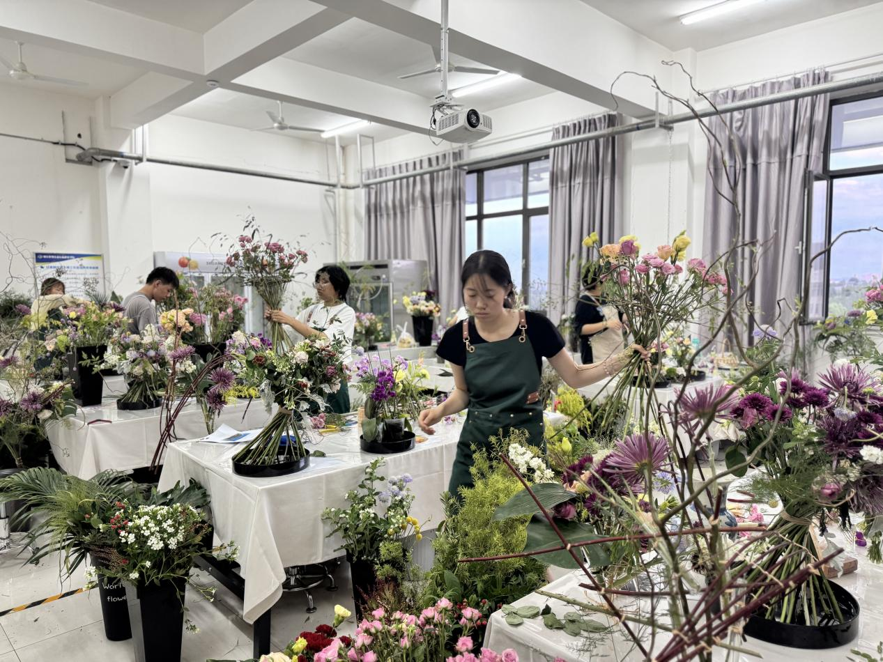 6月19-22日,生态工程系第三届校内花艺技能大赛在实训楼圆满落幕。本届大赛以“花艺赋能生态,匠心铸就未来”为主题,吸引了全系10余名学生同台竞技,通过花束设计、中国传统插花、现代切花装饰、餐桌花、物件装饰5个模块,全面考察学生的专业技能与创新思维。选手们凭借创意巧思,创作出一件件兼具艺术美感与文化内涵的花艺作品,充分展现了我系花艺教学成果和学生的专业素养。最终评选出一等奖1名、二等奖2名、三等奖2名。