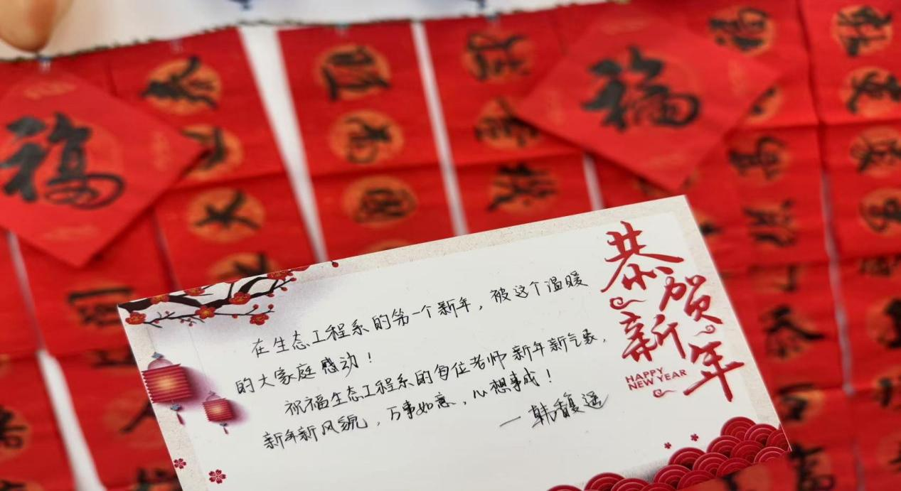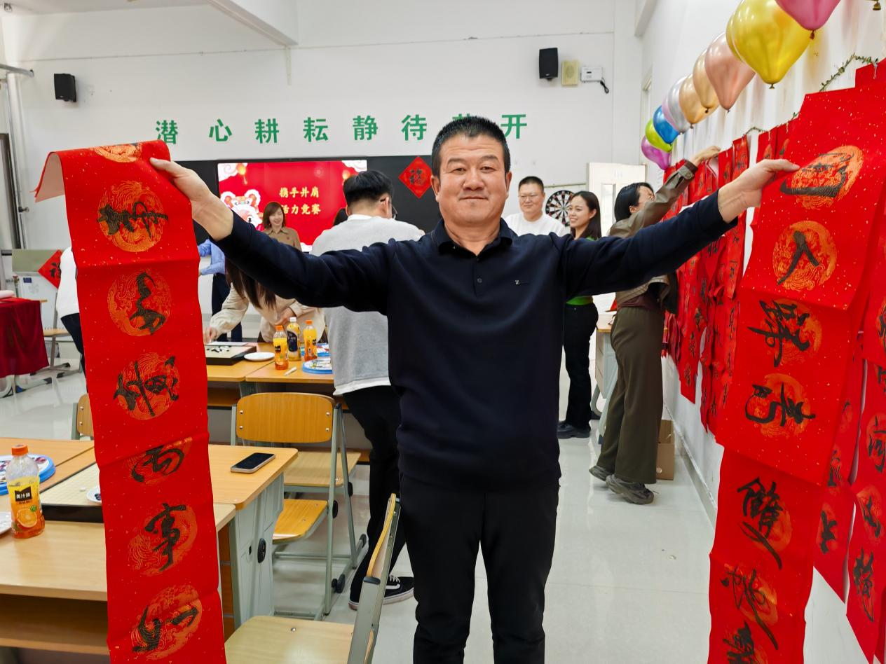 党总支书记白文龙为全系教师书写春联,浓浓的年味跃然纸上,营造了祥和喜庆的氛围。