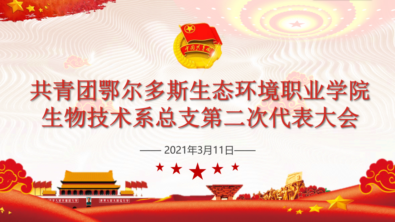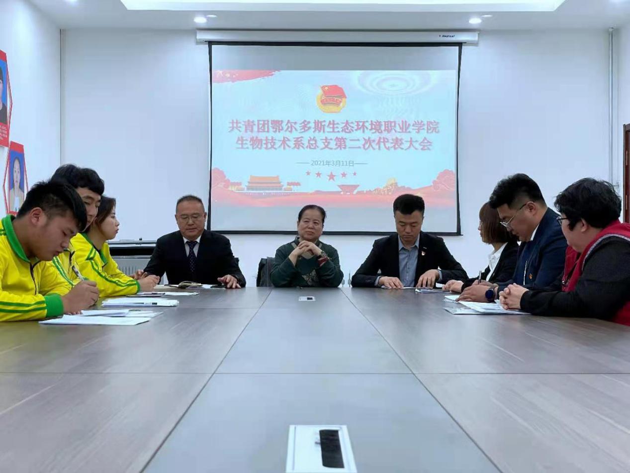 共青团鄂尔多斯生态环境职业学院生物技术系总支第二次代表大会全面总结了过去三年所取得的工作经验,认真分析了当前的形势和青年的特点,明确了今后三年生物技术系团总支工作的指导思想和目标任务。大会号召团员青年,要用习近平新时代中国特色社会主义思想构筑强大精神支柱,坚定理想信念,坚持学习思考,要投生中华民族伟大复兴的历史征程中书写青春华章。生物技术系团总支要在学校党委和上级团组织的坚强领导下,继续传承五四精神,争做时代先锋,谱写青年之歌!。