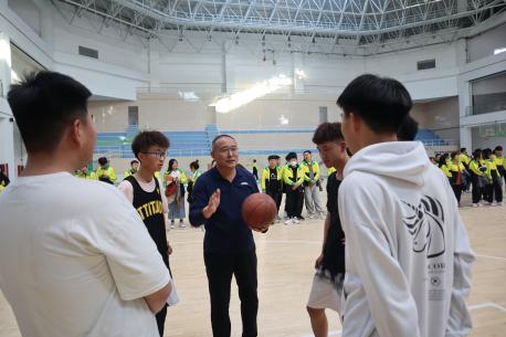 伴随着哨声的响起,现场的气氛极具攀升,高高抛起的篮球点燃了本次篮球赛的活力,以张晓飞书记为队长的19级学生代表队和以杨帆主任为队长的20级代表队迅速进入状态,进取投入,全力以赴。