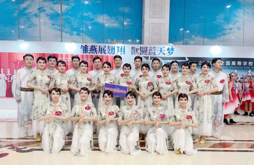 心中无比紧张,路途遥远舟车劳顿,星光不问赶路人,时光不负有心人。坚定的信念,不变的追求,是获取成功的唯一途径。也是跟随着这个信念,我们不敢懈怠,到达目的地后马上进行分组背题练习实操,彩排之前所排练的舞蹈和走秀,时间紧任务重。经过几天没日没夜的彩排与练习,终于迎来了展现的时刻。在比赛后场的时候看到其他学校的同学们都神采飞扬自信满满,心中不由有些紧张。踩着十多厘米的高跟鞋穿着华丽繁琐的礼服,这一刻身上穿的不在是礼服而是在舞台展现自我的战袍。我们微笑淡定的出场,美轮美奂、莘莘学子各具风采。伴着悠扬欢快的歌声,踩着《fly》的节拍把自己最好的一面展现给评委老师,呈现出了一场精彩绝伦的视觉享受,当从台下来的一瞬间感觉到了解脱。这几天的彩排以及之前的训练得到了美满的成果。我们是团体三等奖,在全国四十四所院校中脱颖而出,我们抱着奖杯异常的欣喜。