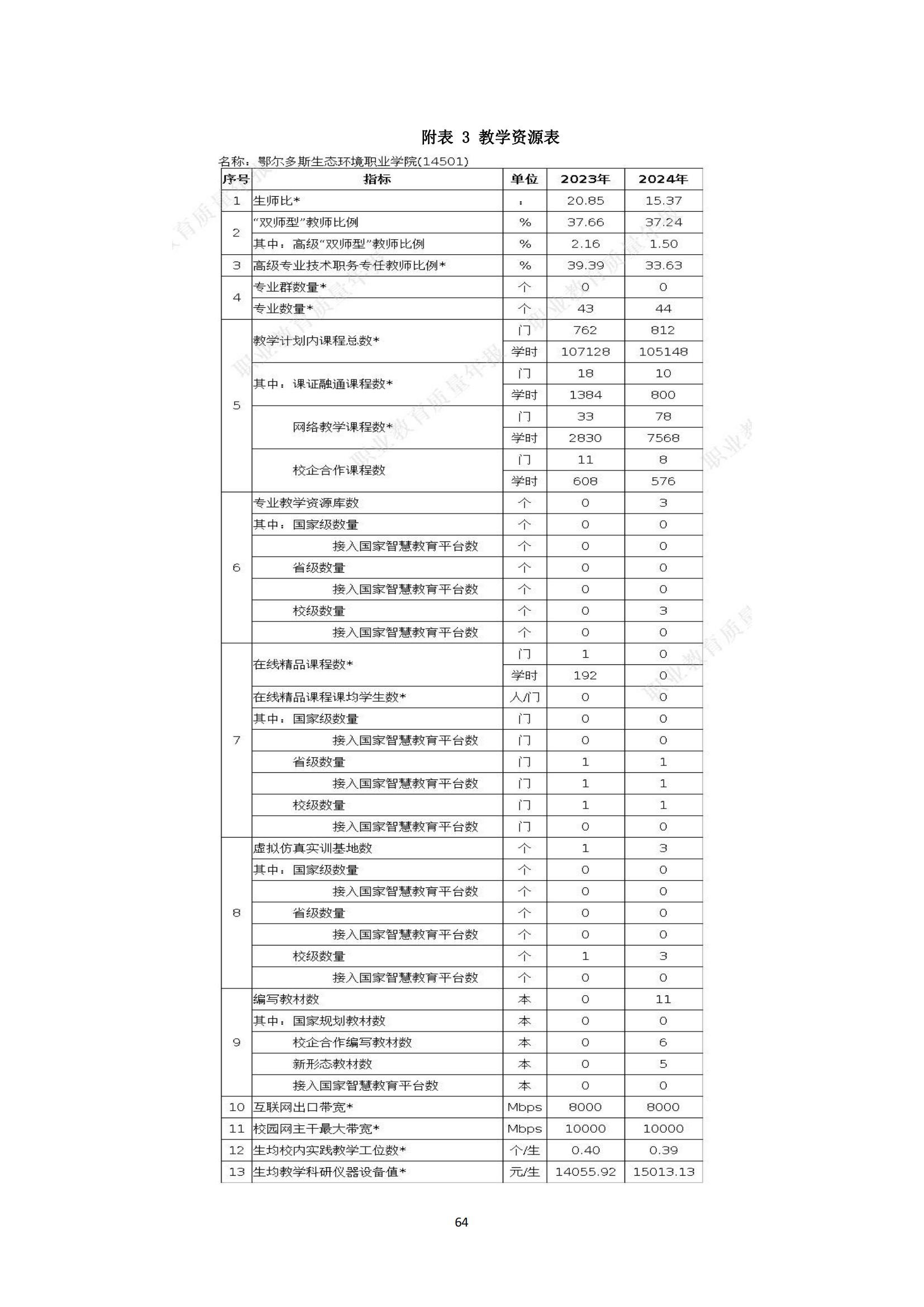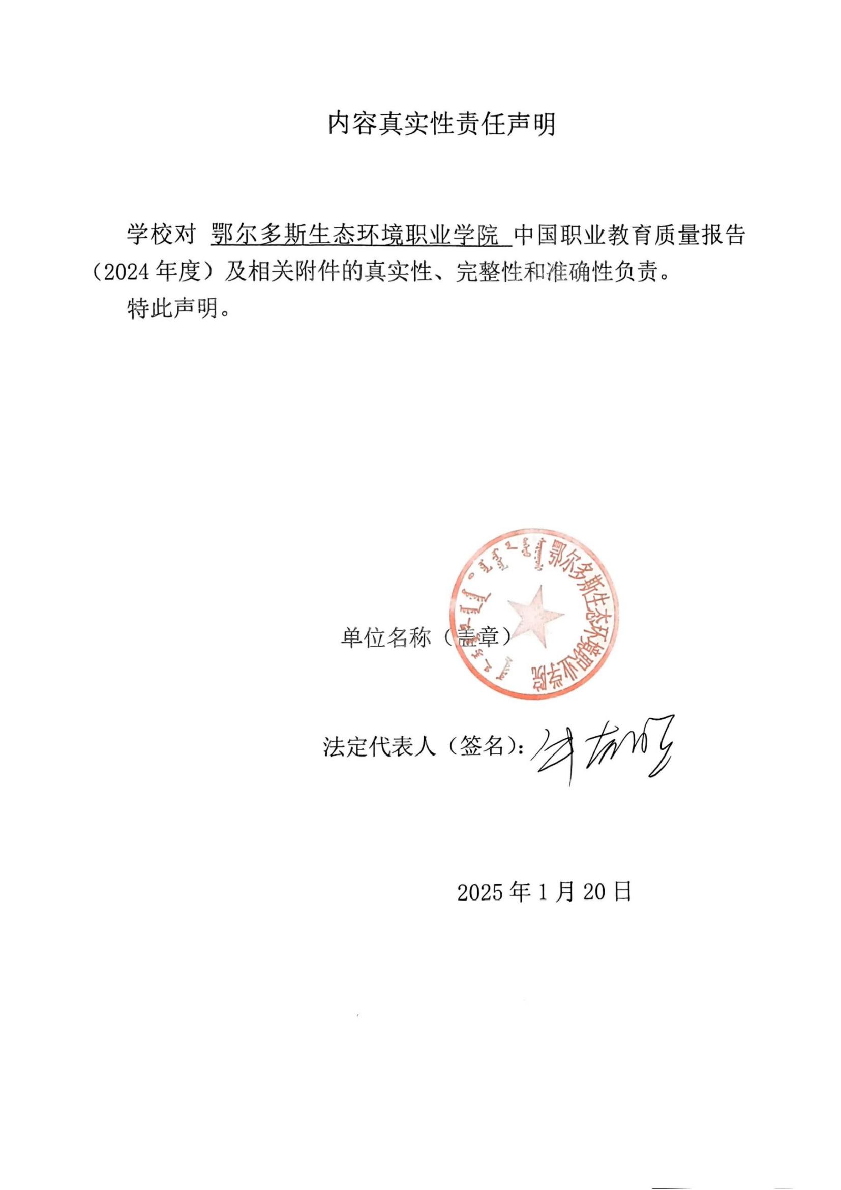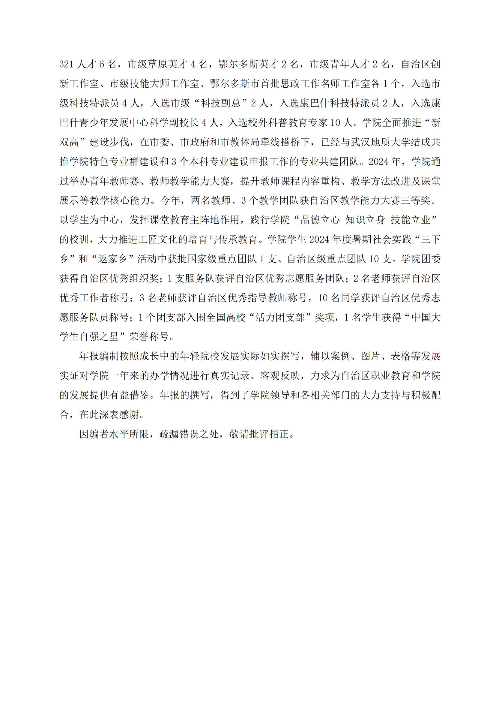 鄂尔多斯生态环境职业学院2024年度中国职业教育质量报告
