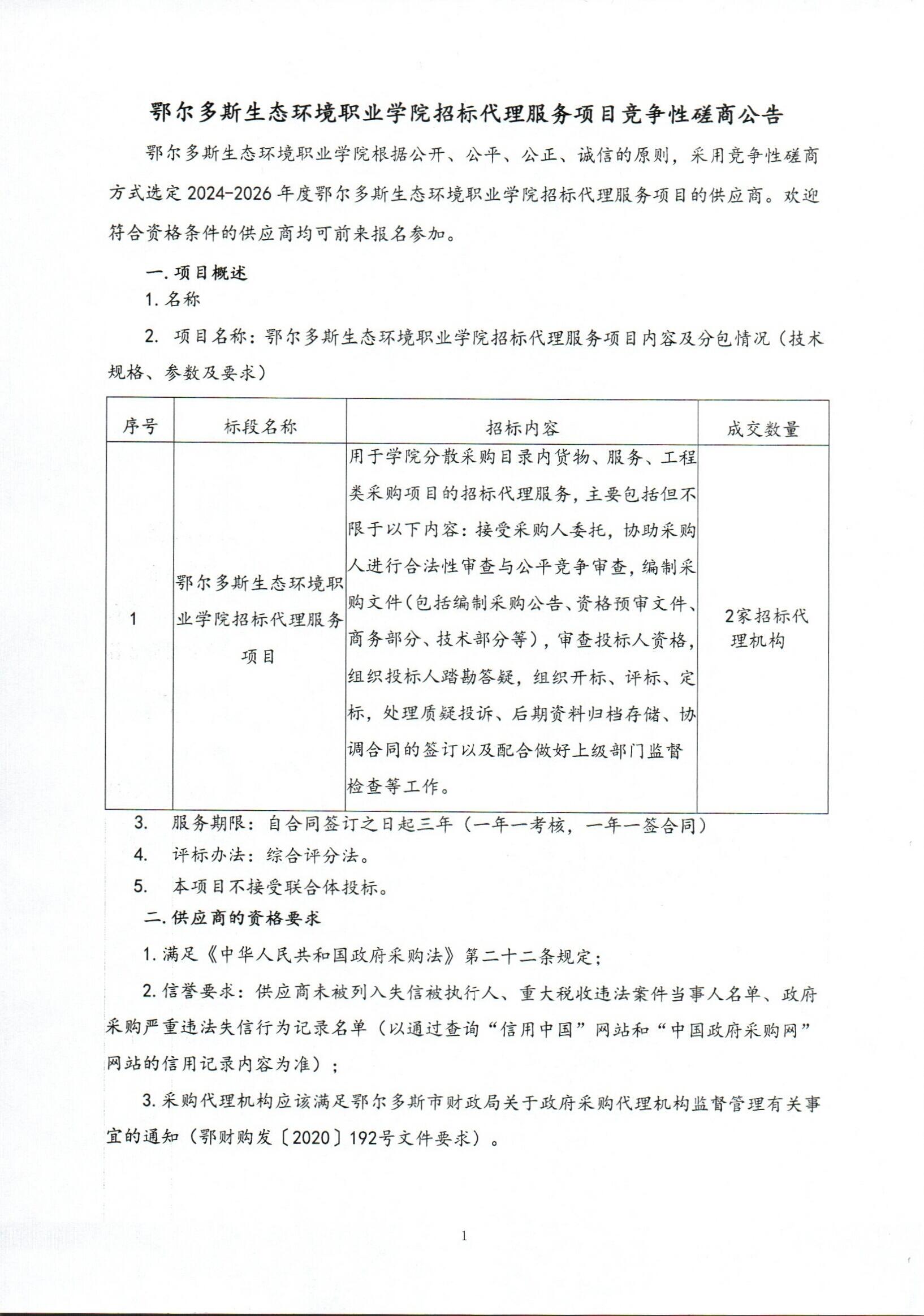鄂尔多斯生态环境职业学院招标代理服务项目竞争性磋商公告