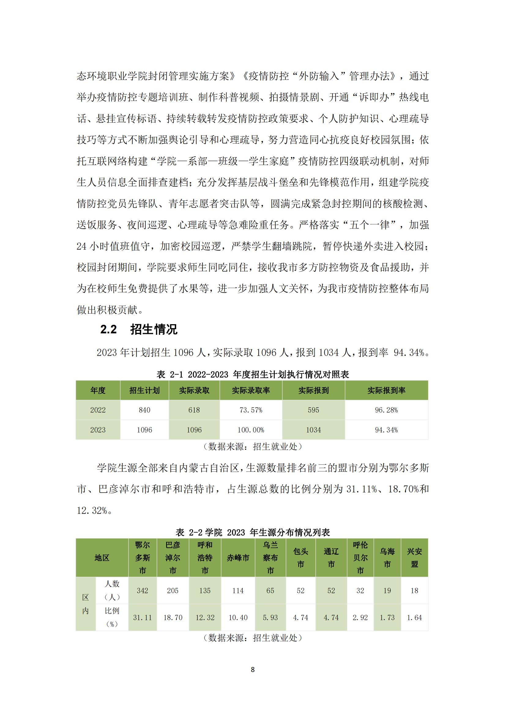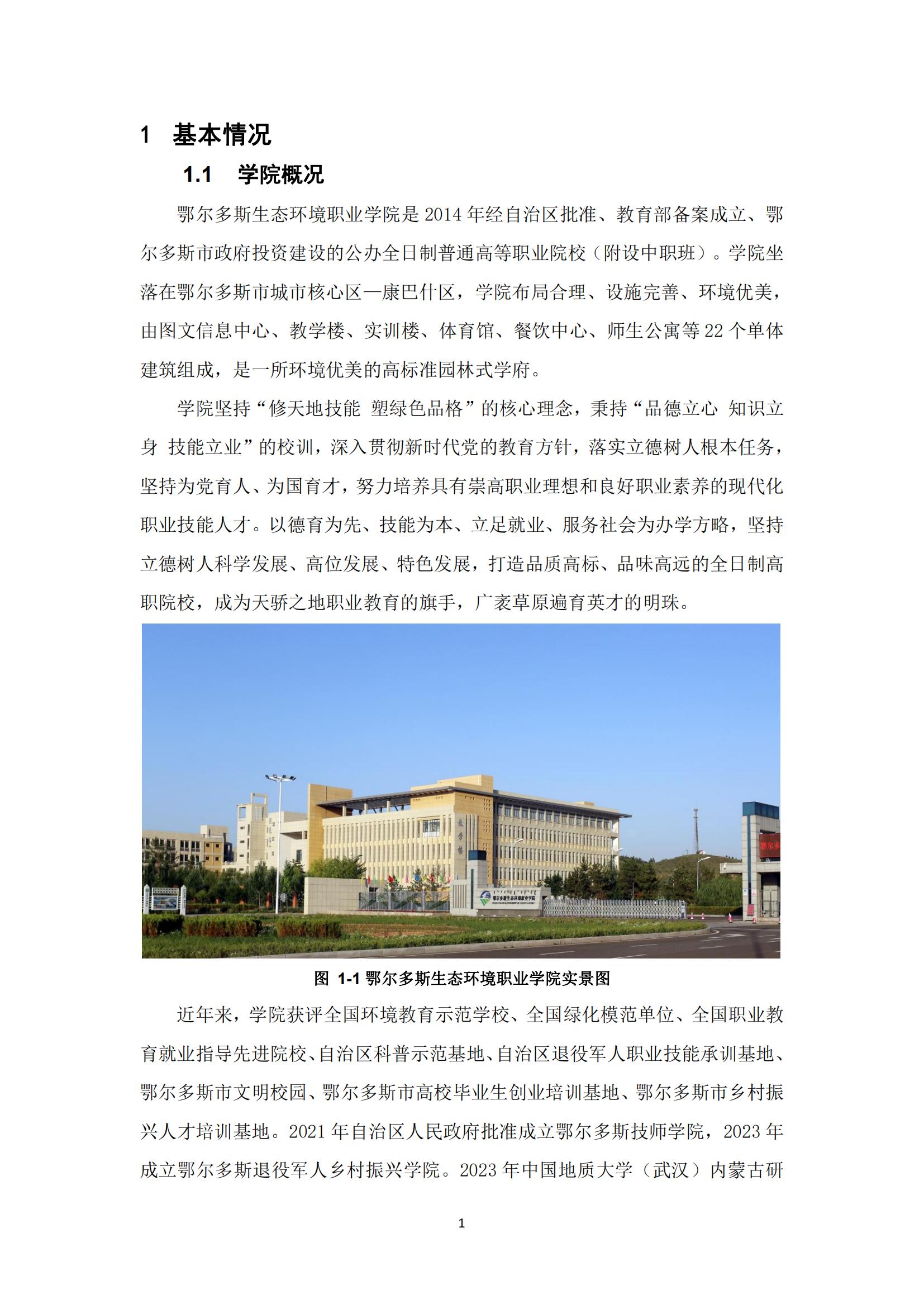 鄂尔多斯生态环境职业学院高等职业教育质量年度报告(2023年度)