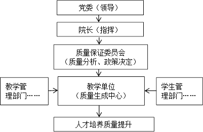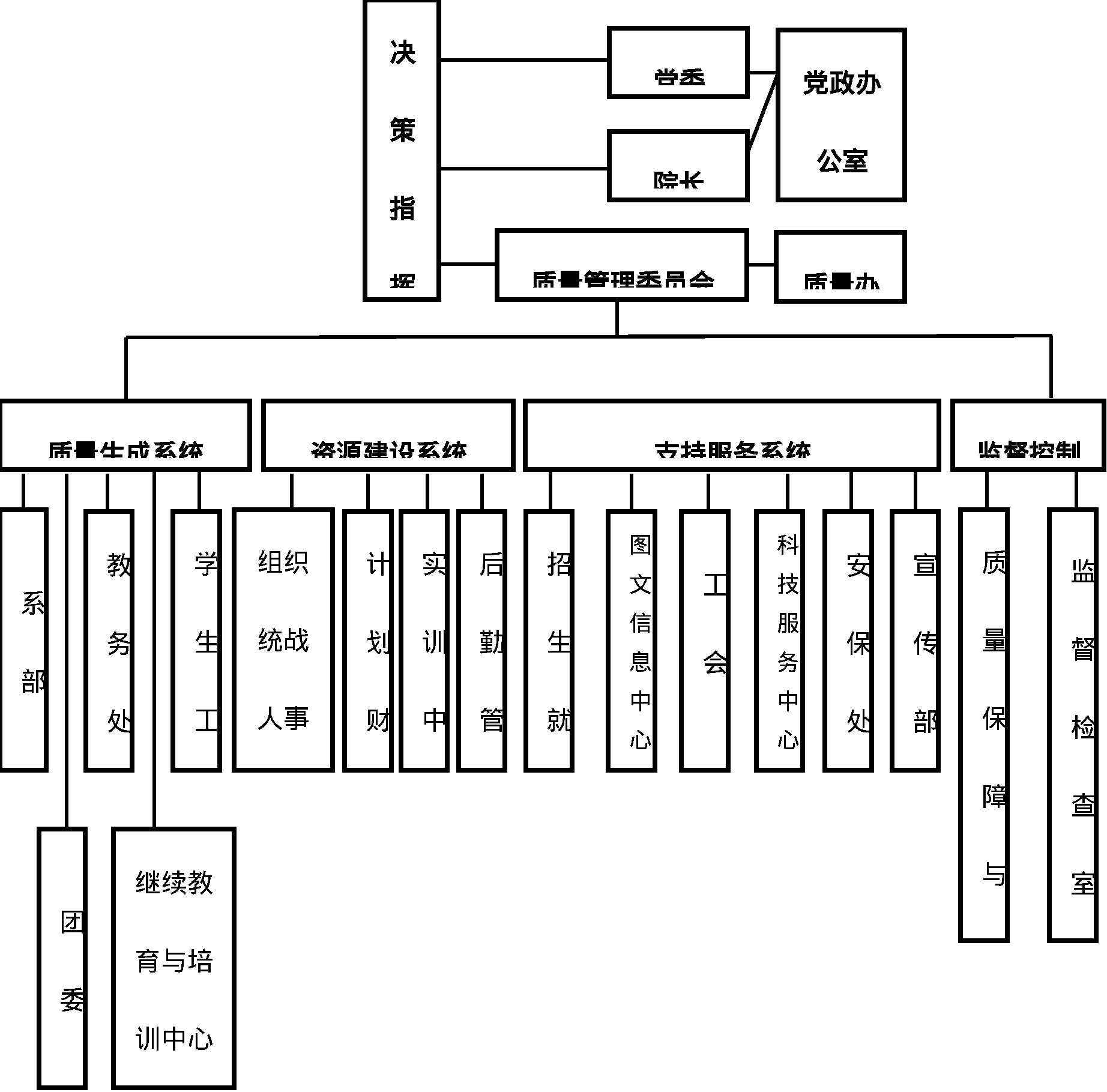 决策指挥系统——学院党委与院长(党政办公室)、质量保证委员会(质量管理办公室)。
