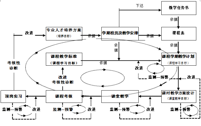 依据高等职业教育人才培养规律和学院实际,针对不同层面(或主体)合理确定诊改内容、周期和方法。