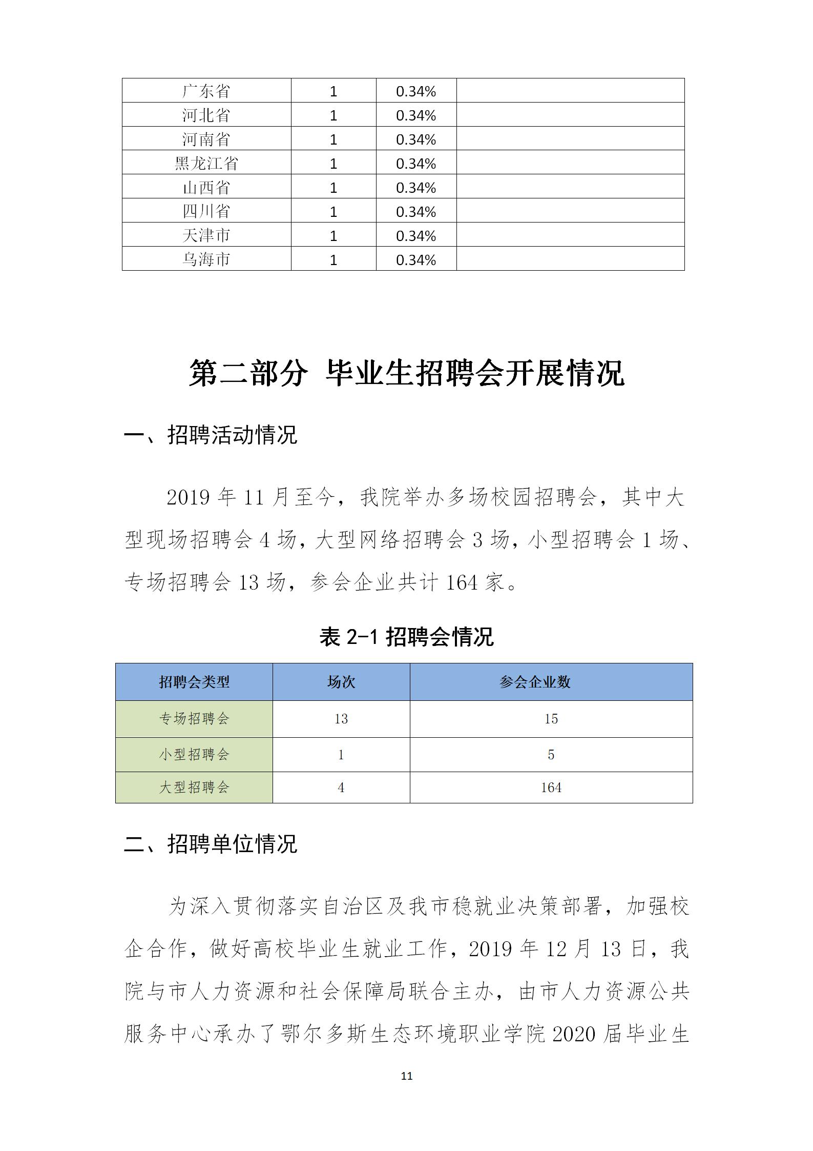 鄂尔多斯生态环境职业学院2020年毕业生就业质量年度报告